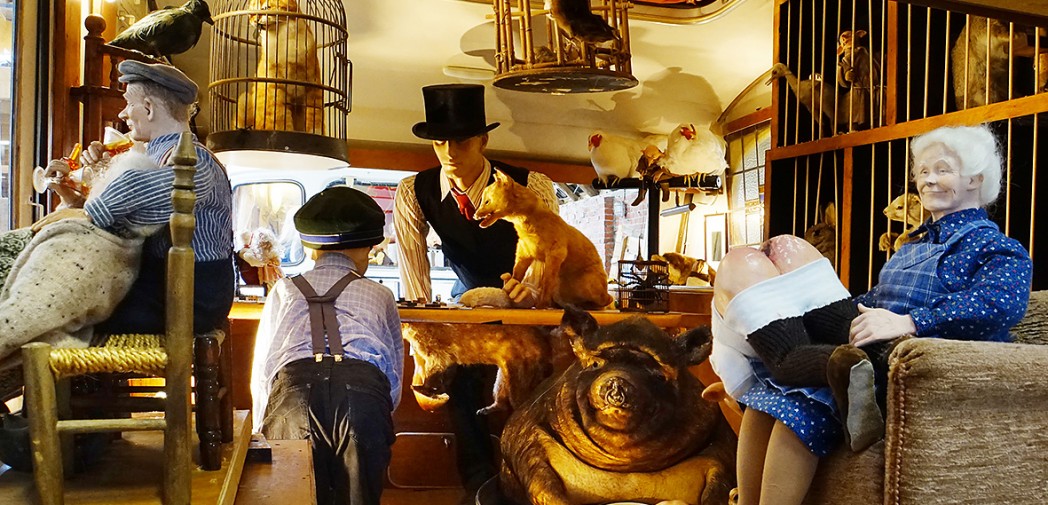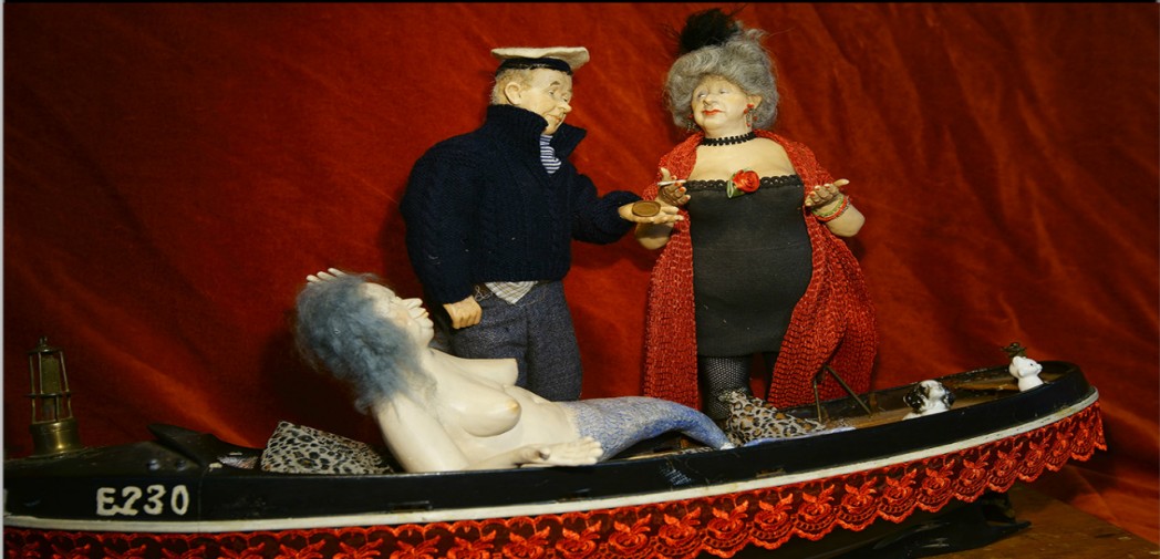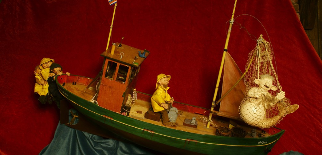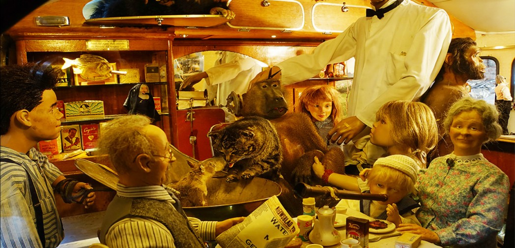 Till now there are three different caravans, they all give shelter to the most rare creatures. There is the one handed dentist van Dam, who has a strange patient, the hair dresser with a very cheeky baboon and a caravan with a “pet shop”, in the pet shop you can see a foetus of a mermaid!