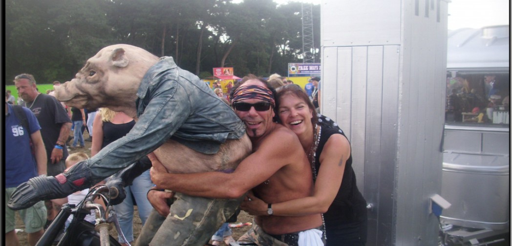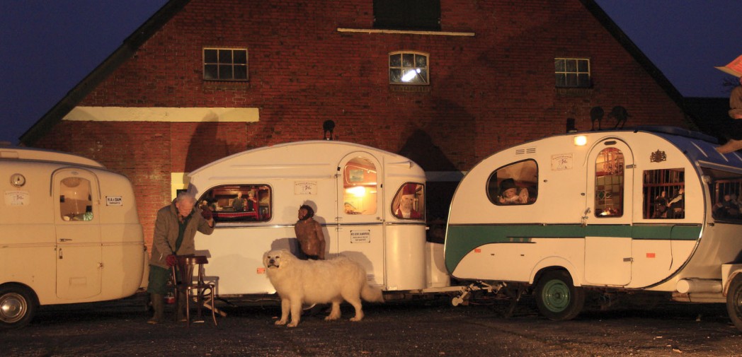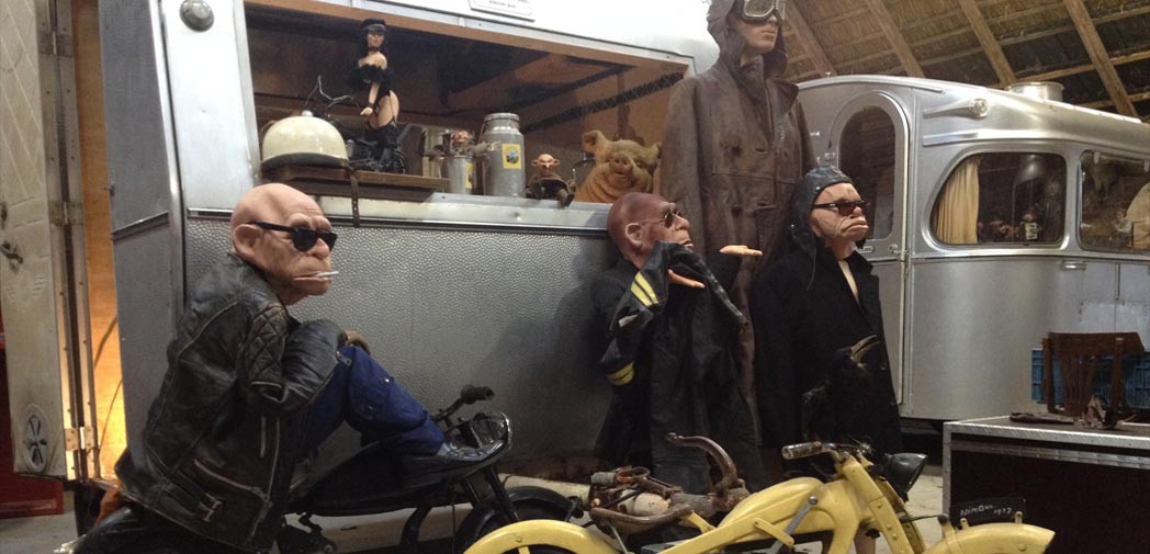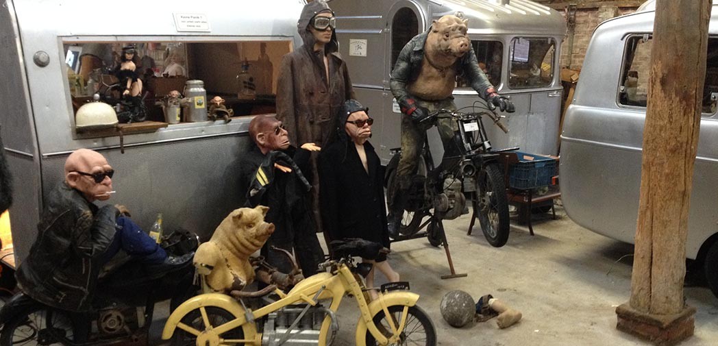 After living in a dark shed for years and years, the freaks did escape and found their new home in caravans. These caravans now travel Europe where everyone can admire the freaks. The freaks are led by “Oscar the pig” on his moped.